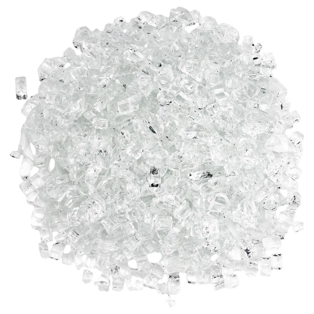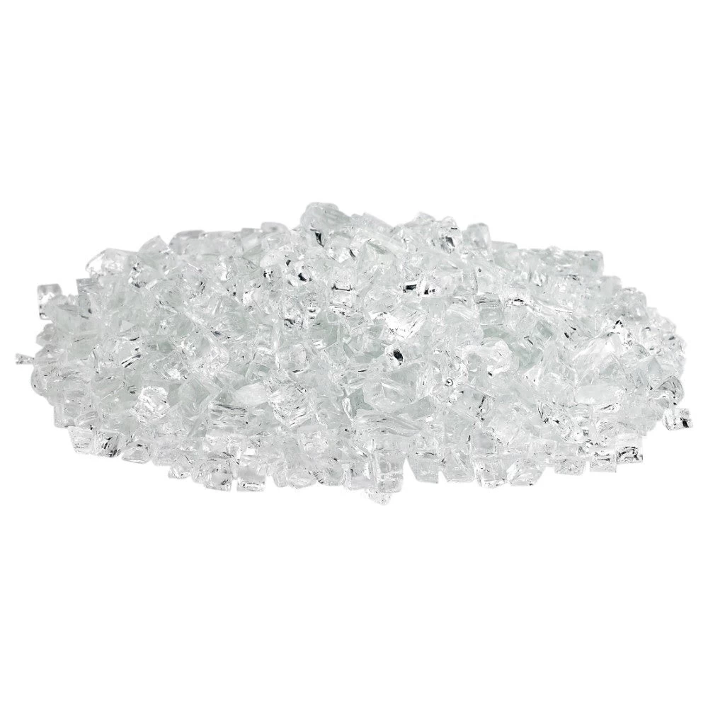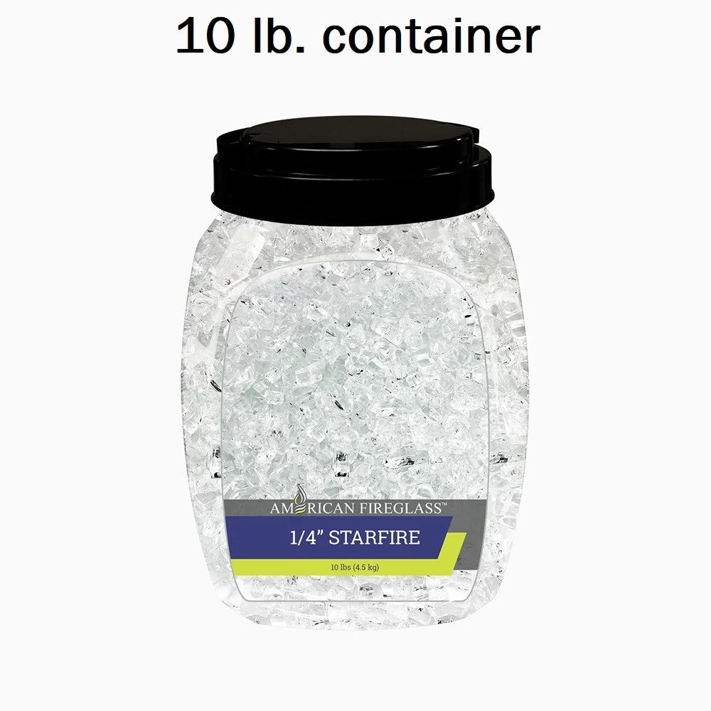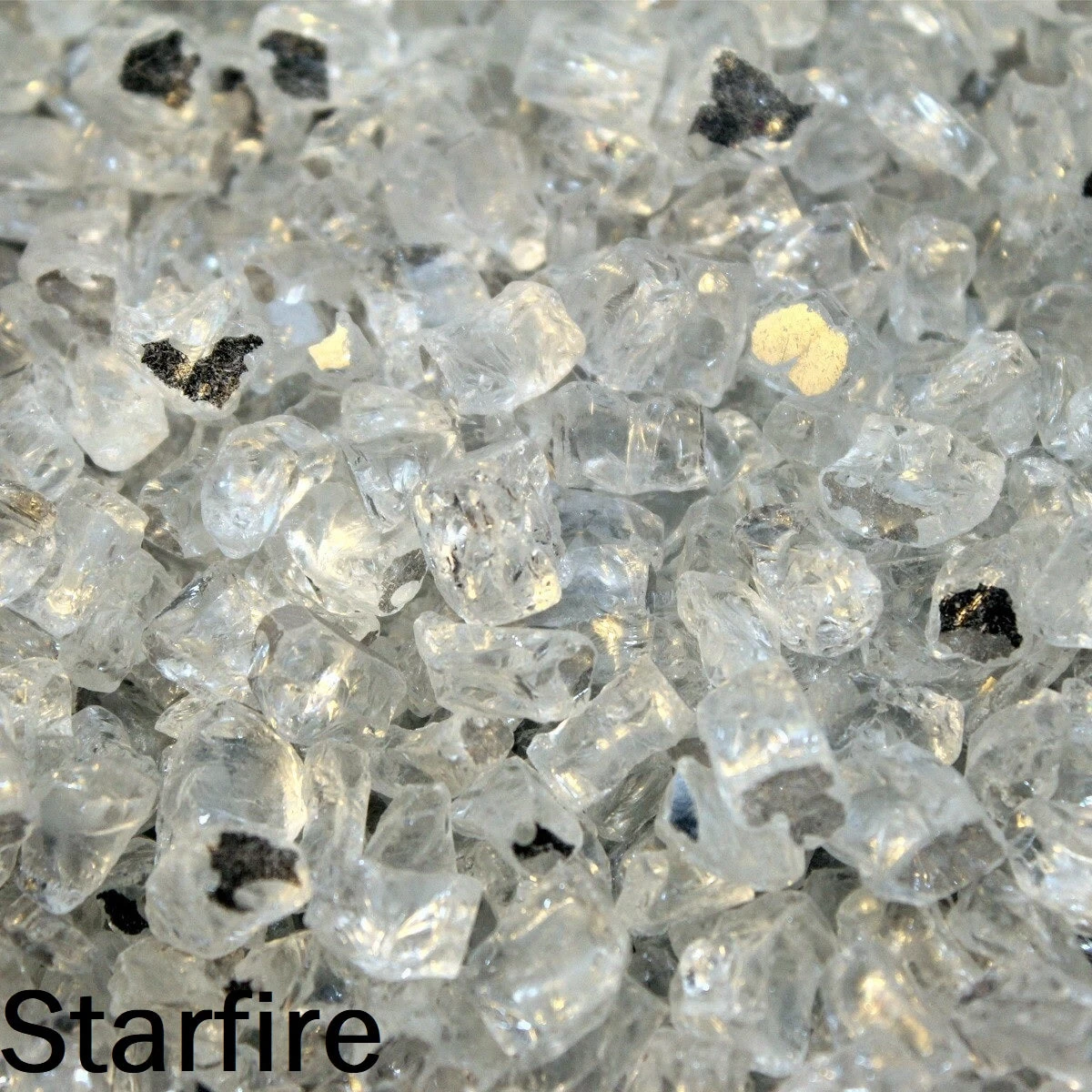 Our ¼” Starfire Fire Glass is not just gorgeous to behold, but also very practical. It does a great job of covering the entire floor of a fire feature, effectively hiding the unseemly pipes and tubes that are sometimes visible in gas fireplaces and fire pits. This makes fire glass a more desirable alternative to the more commonly seen ceramic logs and fire stones. This reflective fire glass is tempered in order to withstand temperatures of up to 1300° Fahrenheit and harsh weather without losing its color or shape.Â