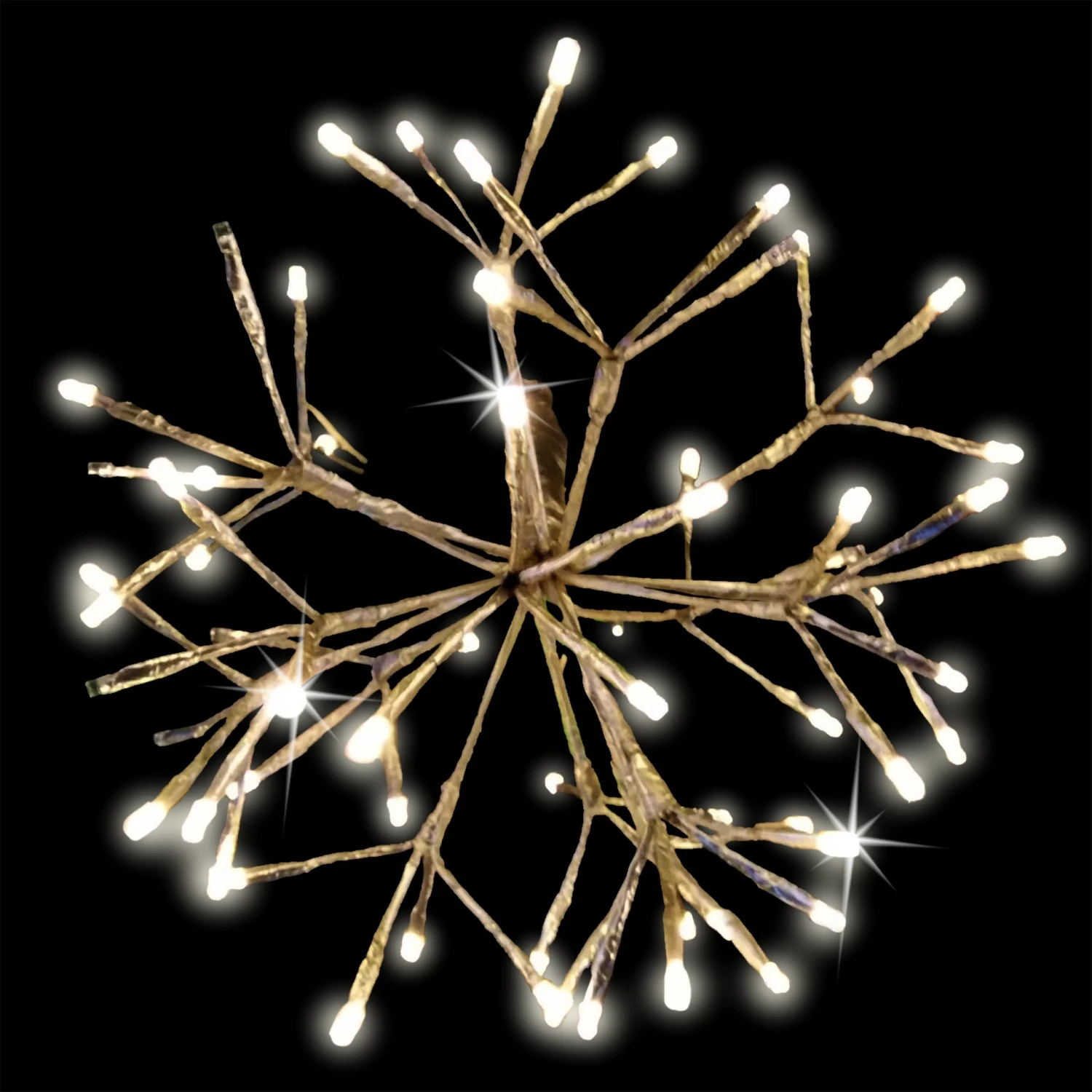 Our Shimmering Sphere is an LED hanging sphere with metallic wrapped branches and twinkling strobe accents. With wrap matching the LED lights, and twinkling lights placed throughout the sphere, this is your go-to when you want to take your décor to the next level.