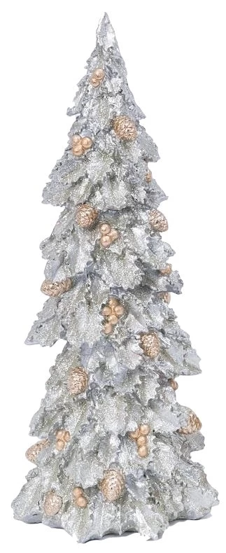 Absolutely gorgeous, this Resin Woodland Tree would add a flair of vintage elegance as a table centerpiece or anchoring to the rest of the Christmas décor on your mantel. Little silver and gold pine cones and berries are nestled between the glittering leaves.
