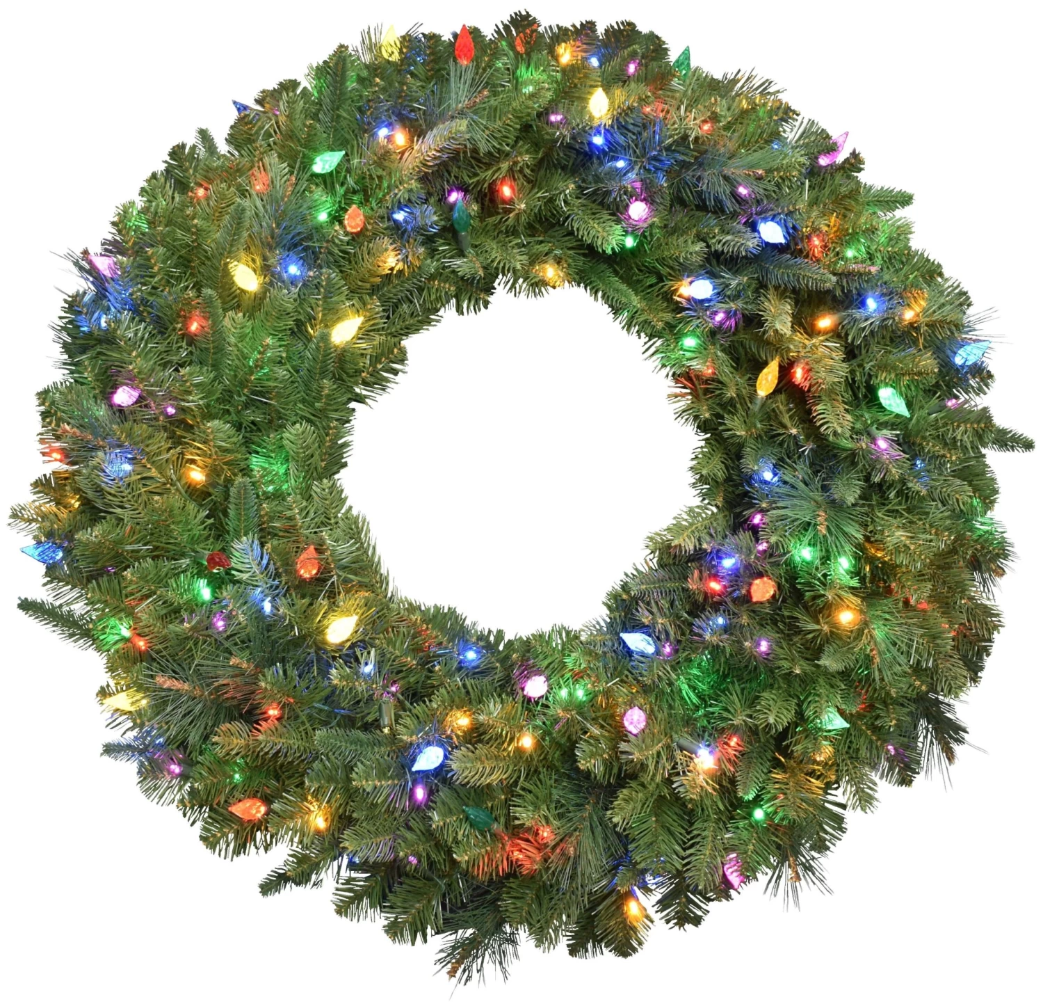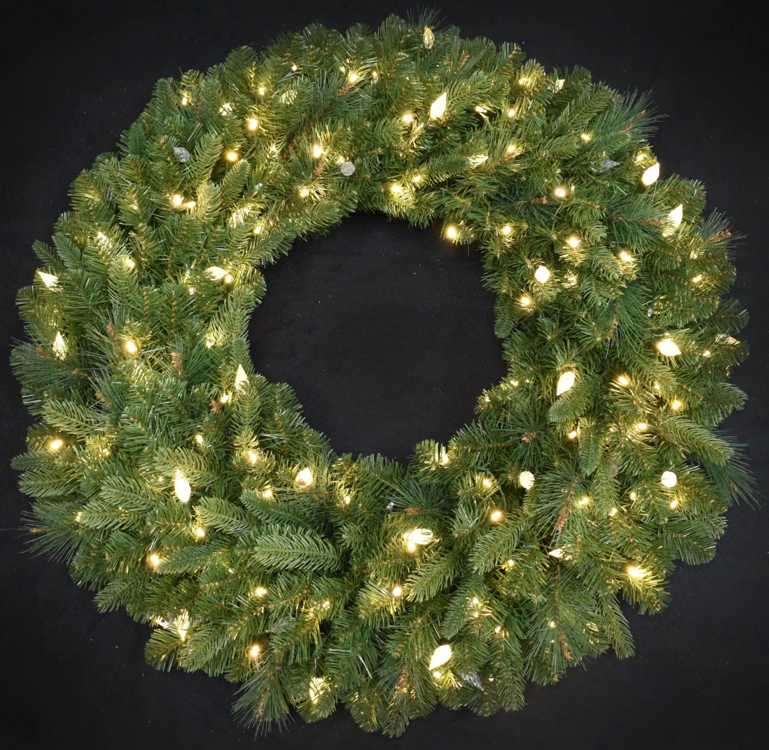 This sturdy Winchester Pine Wreath will last through many holiday seasons. This commercial grade greenery is made with durable fade and crush resistant needles. This beautiful holiday decoration has 160 C6 designer lights nestled among the lush foliage. Hang this classic wreath over a door or window to complete your holiday decorating. Add a bow for a pop of color.