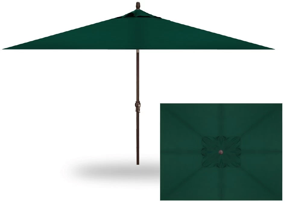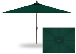 Enjoy a break from the hot summer sun in colorful style with this 6.5′ x 10′ Rectangular Market Bronze Frame Forest Green Canopy Umbrella. Featuring a sturdy, rust-resistant aluminum frame and canopy made from UV resistant outdoor fabric. Easy to open and close with a crank mechanism, the push-button tilt allows the umbrella to be re-positioned to provide shade throughout the day.