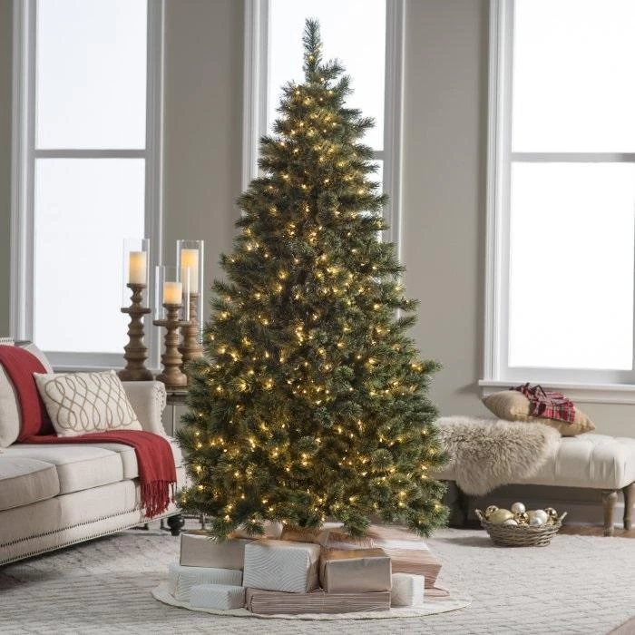 Mark the arrival of Christmas with this gorgeous 7′ Pre-Lit Hudson Cash Pine Artificial Christmas Tree. Beautifully lit with 550 lights and exudes a glowing look. Adorn this tree with vibrant baubles and a matching tree skirt for the perfect festive look.