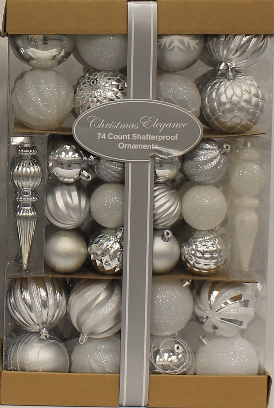 - Set of 74 textured Christmas ornaments