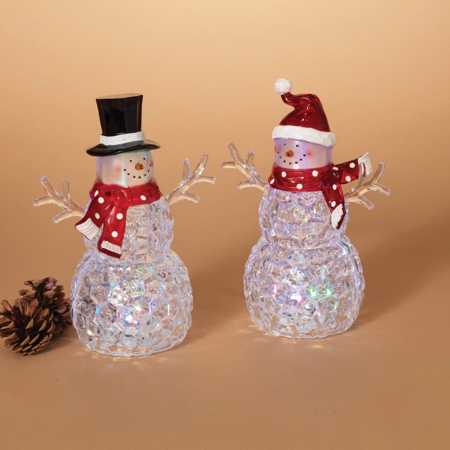 Adorn your home with a wonderful Christmas collection! With this 9″ Battery-Operated Light Up Acrylic Snowman Figurines, you can add a little light and charm this season. With white glitter accents, this snowman is sure to light up and dazzle your home!