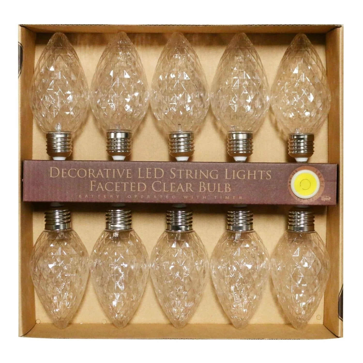 Light the darkness in style with these beautiful Alpine Decorative String Lights with Faceted LED Bulbs.