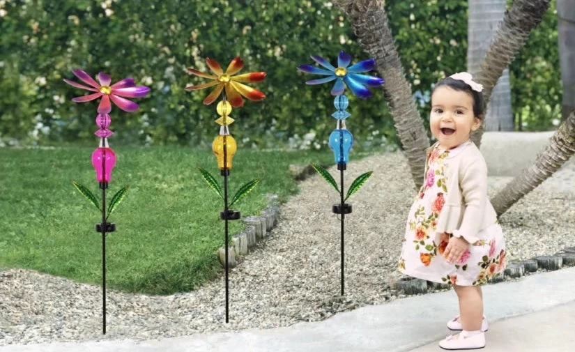 Our solar-powered Bejeweled Metal Spinning Floral Stake Light features artisan craftsmanship. Place this solar garden art on your patio for instant enjoyment. This solar garden light will be ready year after year to provide a warm glow to your home.
