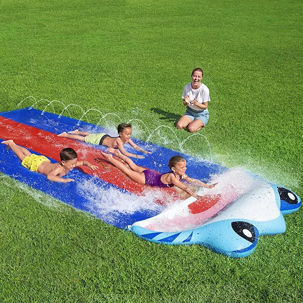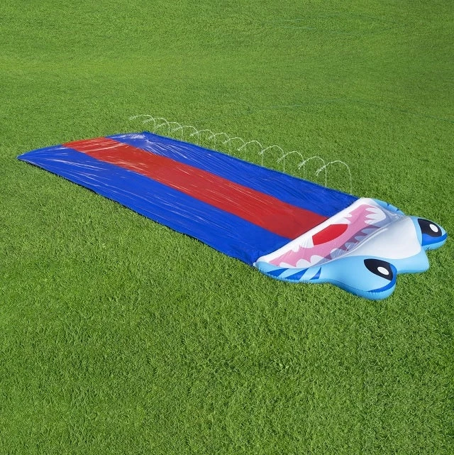 This H20GO! 16′ Splashy Shark Water Slide from Bestway acts as a slip ‘n slide for ultimate summer fun! At the end of the slide, there’s a splashy drench pool for a dramatic finish. Simply connect to a garden hose and let the water do the rest.