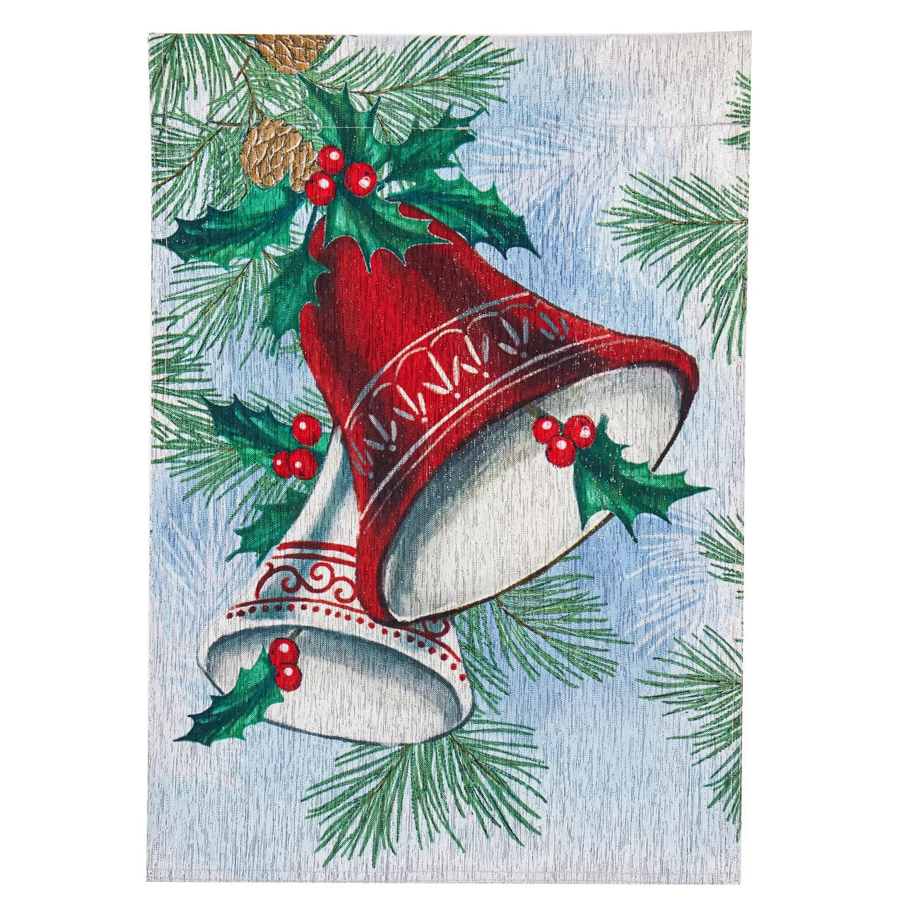 Add an extra dose of holiday cheer by displaying this Christmas Bells Glisten Garden Flag. The two bells have holly and pine accents with scroll designs that add charm to this flag. This exclusive Glisten Flags are crafted of a weather-resistant polyester with metallic threads woven into the fabric to create a brilliant glistening effect.