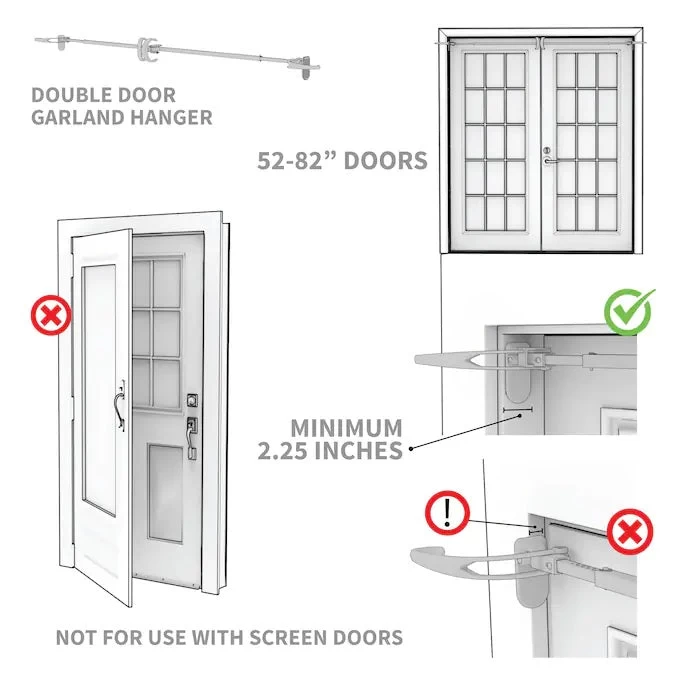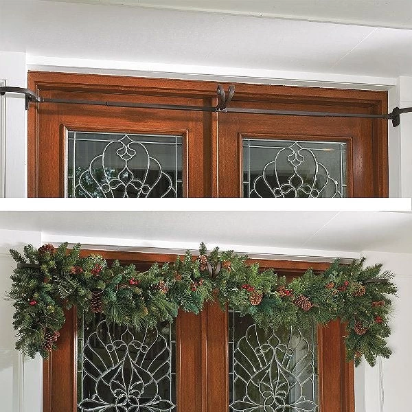Designed to prevent damage to your door frame, the garland hanger uses pressure to hold garlands up to 20 lbs. up in your door jam. Complete with rubber pads on each end help ensure that your door frame is protected, and a durable powder coating to prevent rusting of the hanger.