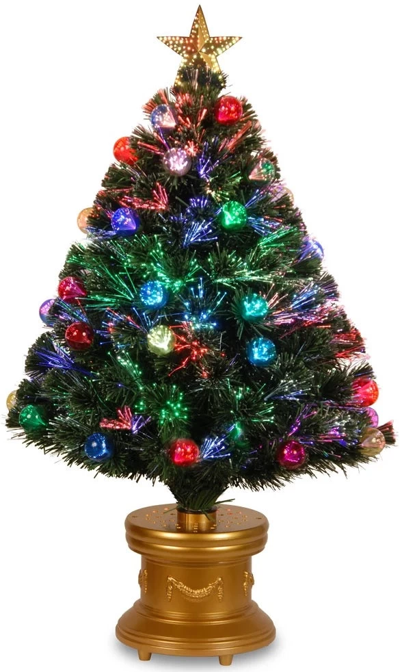 Colorful ornaments stand out against the dense branches of this Fiber Optic Firework Artificial Christmas Tree. This artificial tree with a lavish gold column base features multi-colored ball ornaments hanging from its lush greenery and dazzling fiber optics instead of traditional bulbs. The twinkling glow of this tree constantly changes its hue and makes this piece a captivating addition to any setting.