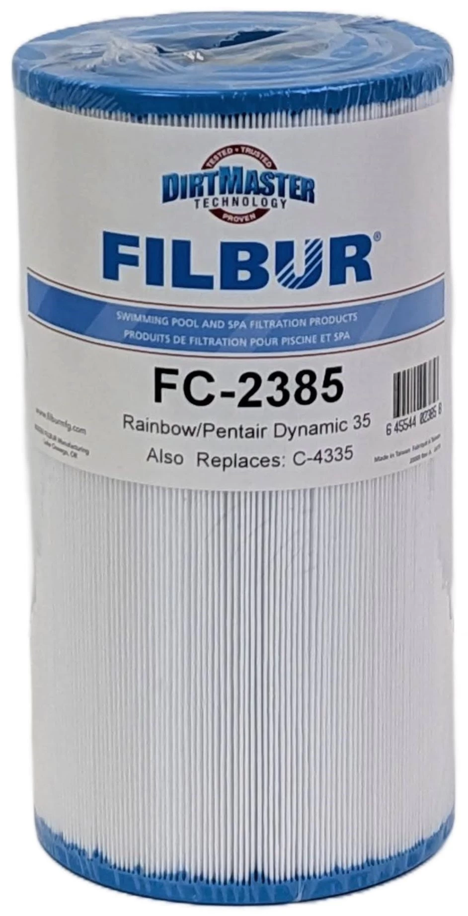 The Filbur FC-2385 FC-2385M Hot Tub Spa Filter is a compatible alternative pool and hot tub spa replacement for Thermo Spas FL1008, Filbur FC-2385, Pleatco PRB35-IN, and Unicel C-4335 cartridges. SP-PS-2385 is designed to fit spas and pools by Thermo Spas, Caldera Spas, Sundance Spas, Pentair Pool Products – Rainbow Plastics, Waterway Plastics, and many more.