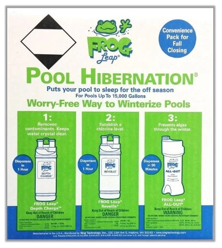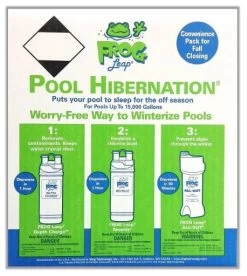 FROG® Leap® Pool Wake Up!® / Pool Hibernation is a convenient kit that makes the beginning and end of pool season feel like a breeze. The kit includes 3 products, all designed to function within the FROG® Leap Infuzer® as easily as Ready, Set, Go.