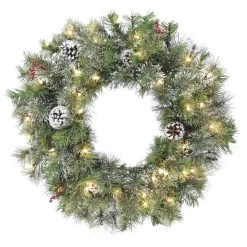 Decorate this Holiday Season with our exquisite Frosted Mountain Ridge Pre-Lit Artificial Wreath that will make your home festive.