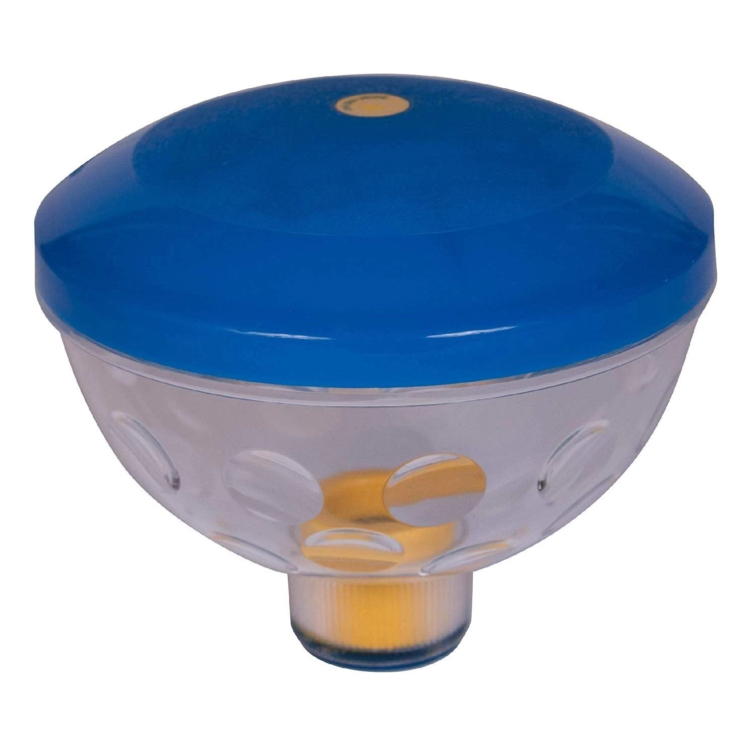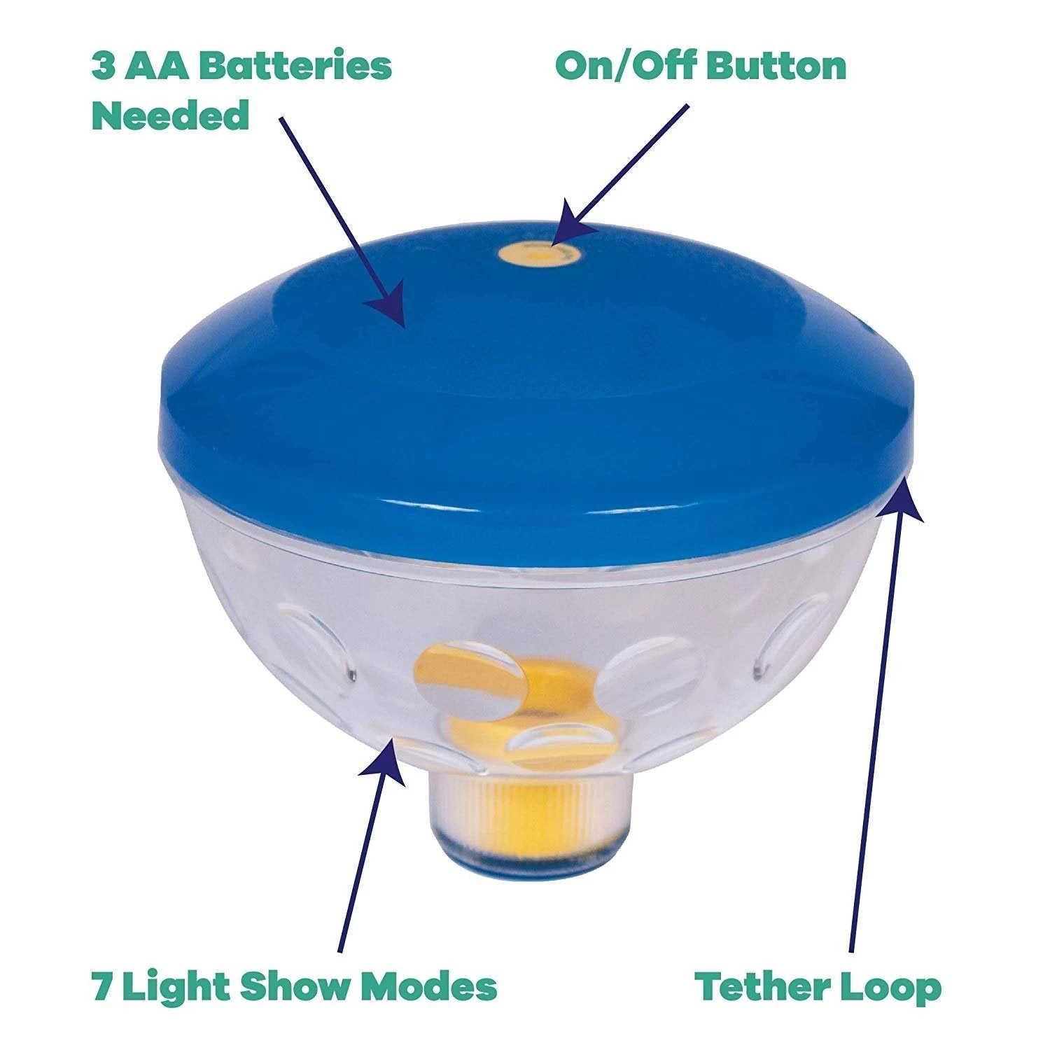 - Floats on the surface of the water and projects light and color onto the bottom and sides of the pool