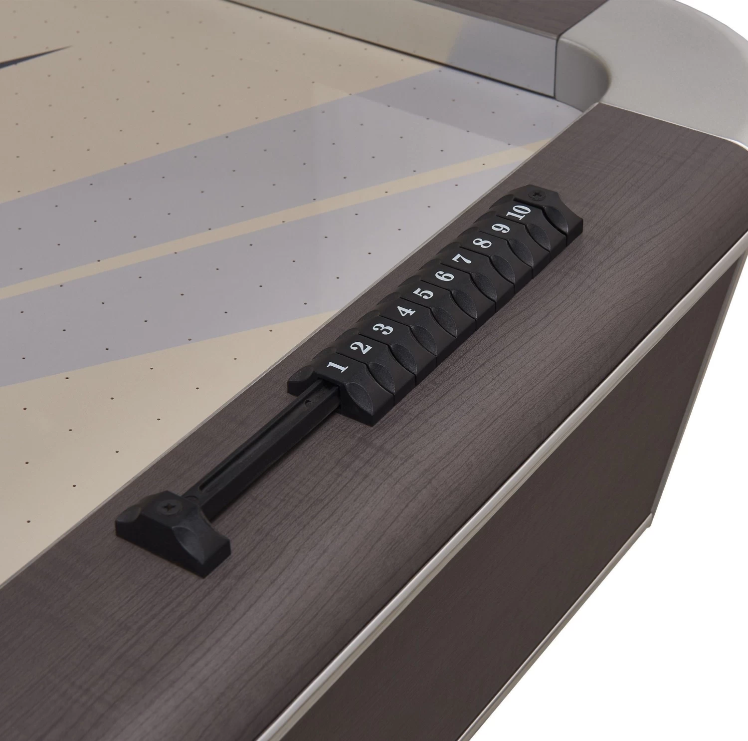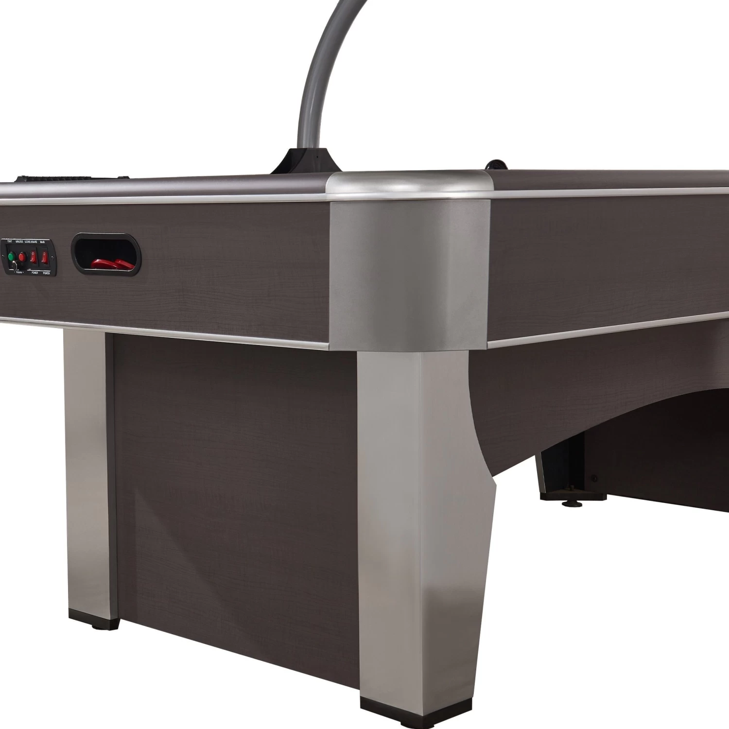 A two-player electronic scoring system is included on the unique overhead arch. The table includes 4 pucks, 4 goalies, 2 additional manual inset scoring systems and a powerful single fan for optimized gameplay.