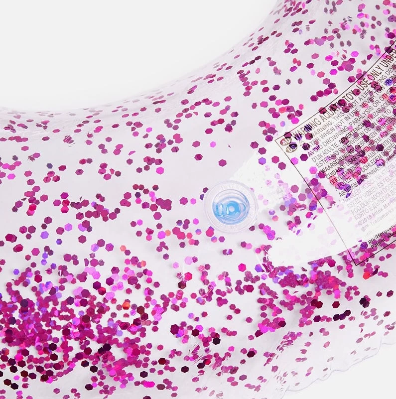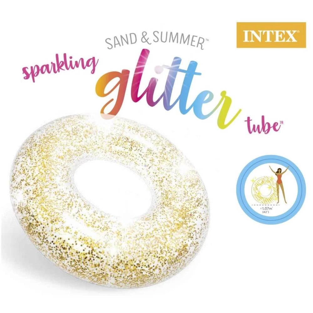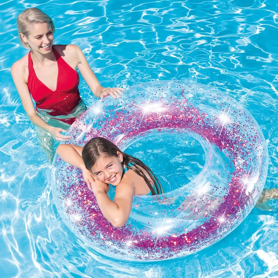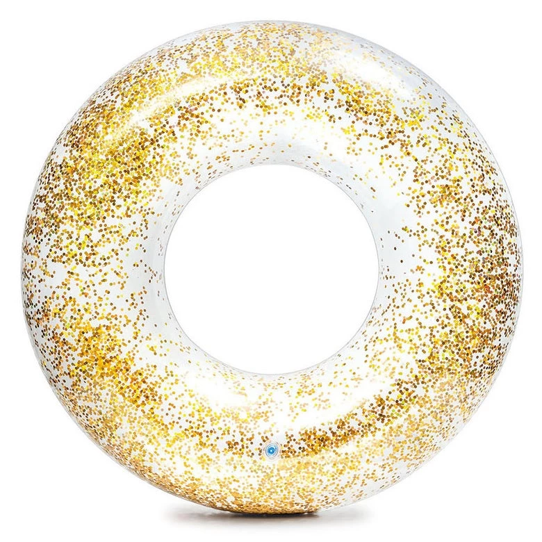 Catch everyone’s attention and look gorgeous at your next pool party with the Intex Transparent Glitter Tubes. These tubes are filled with gold or pink glitter that move around within the tubes. The sun hits the glitter and sparkles with all the colors of the rainbow.