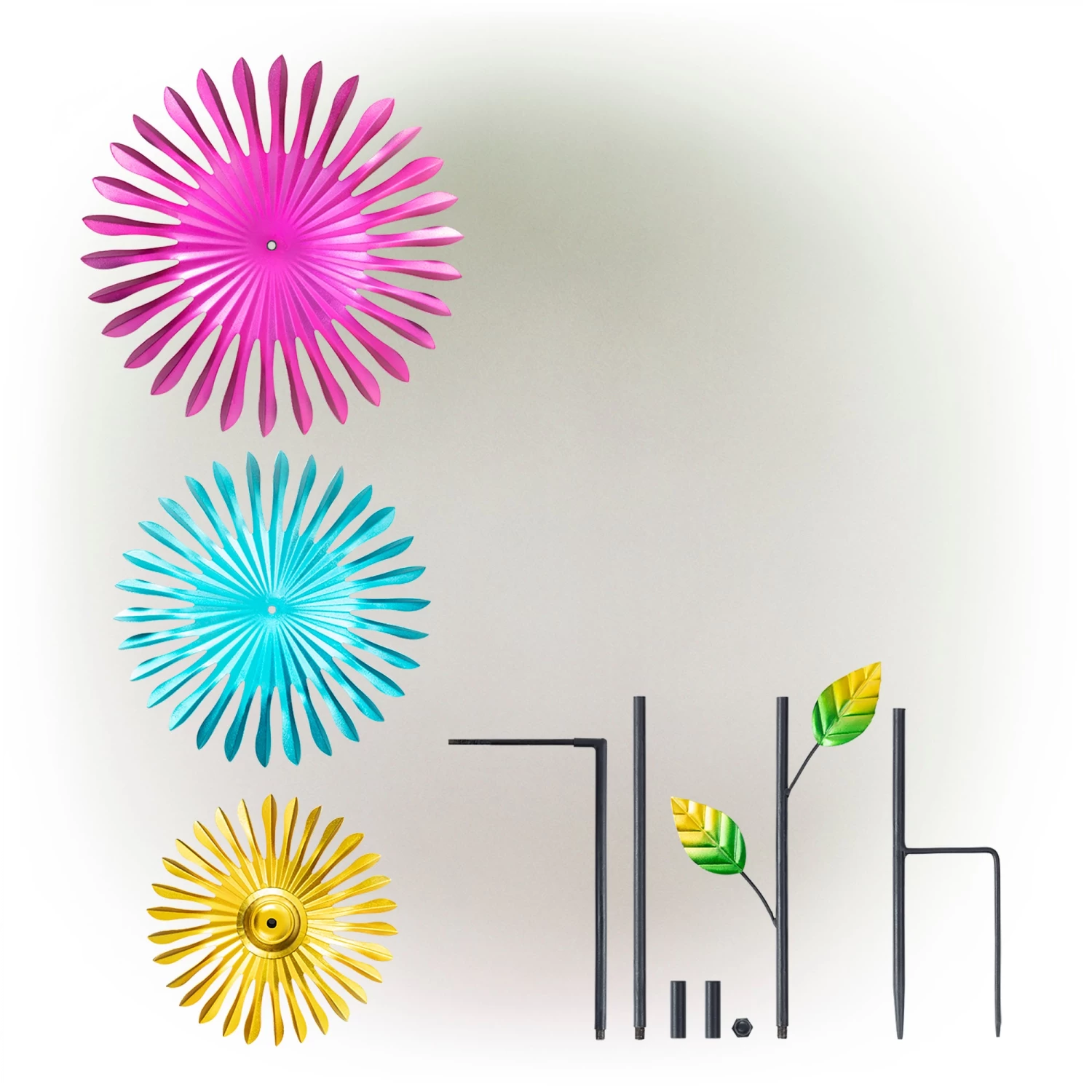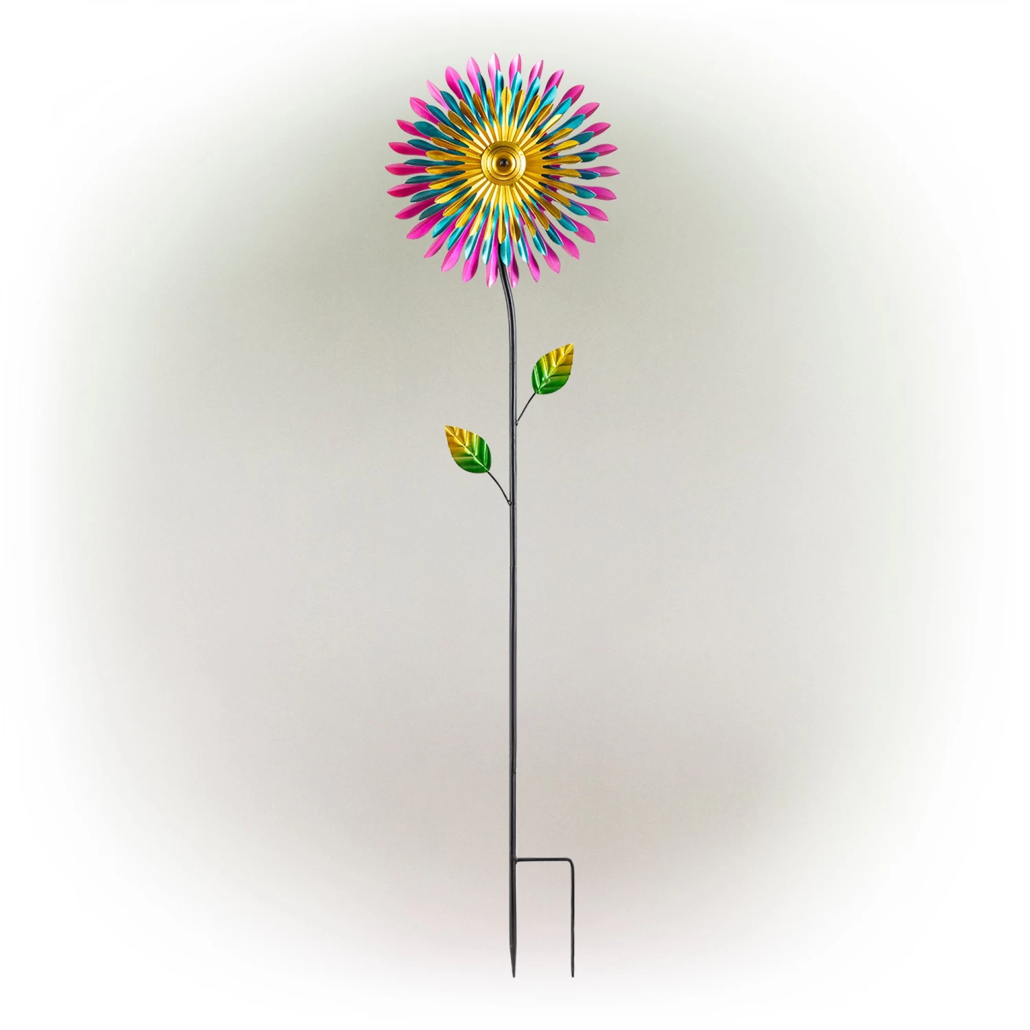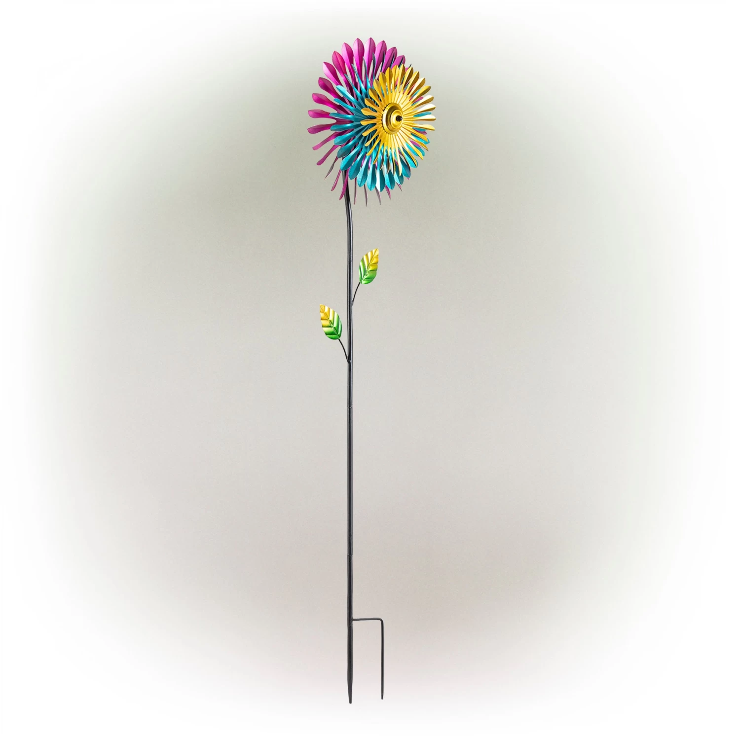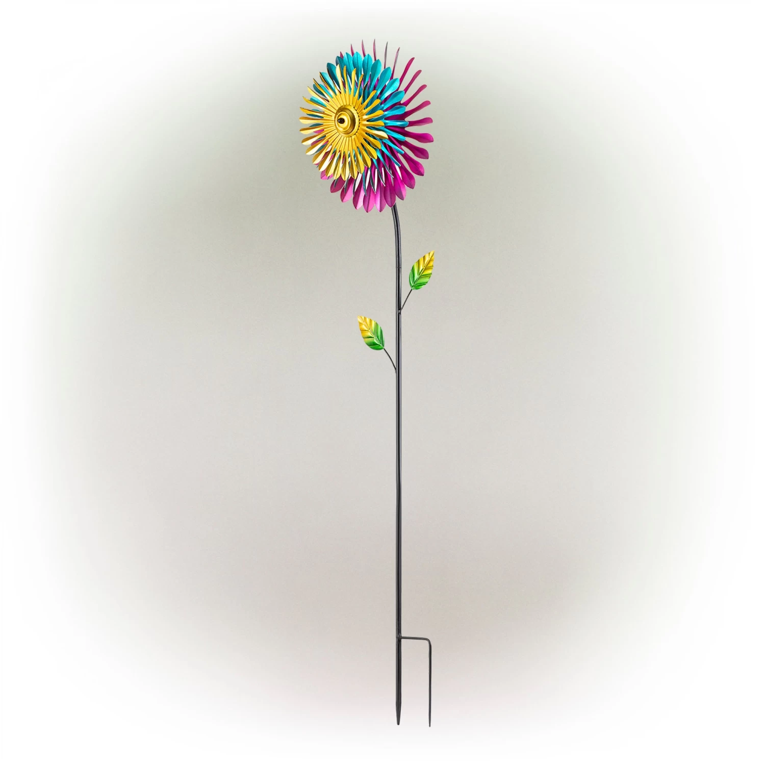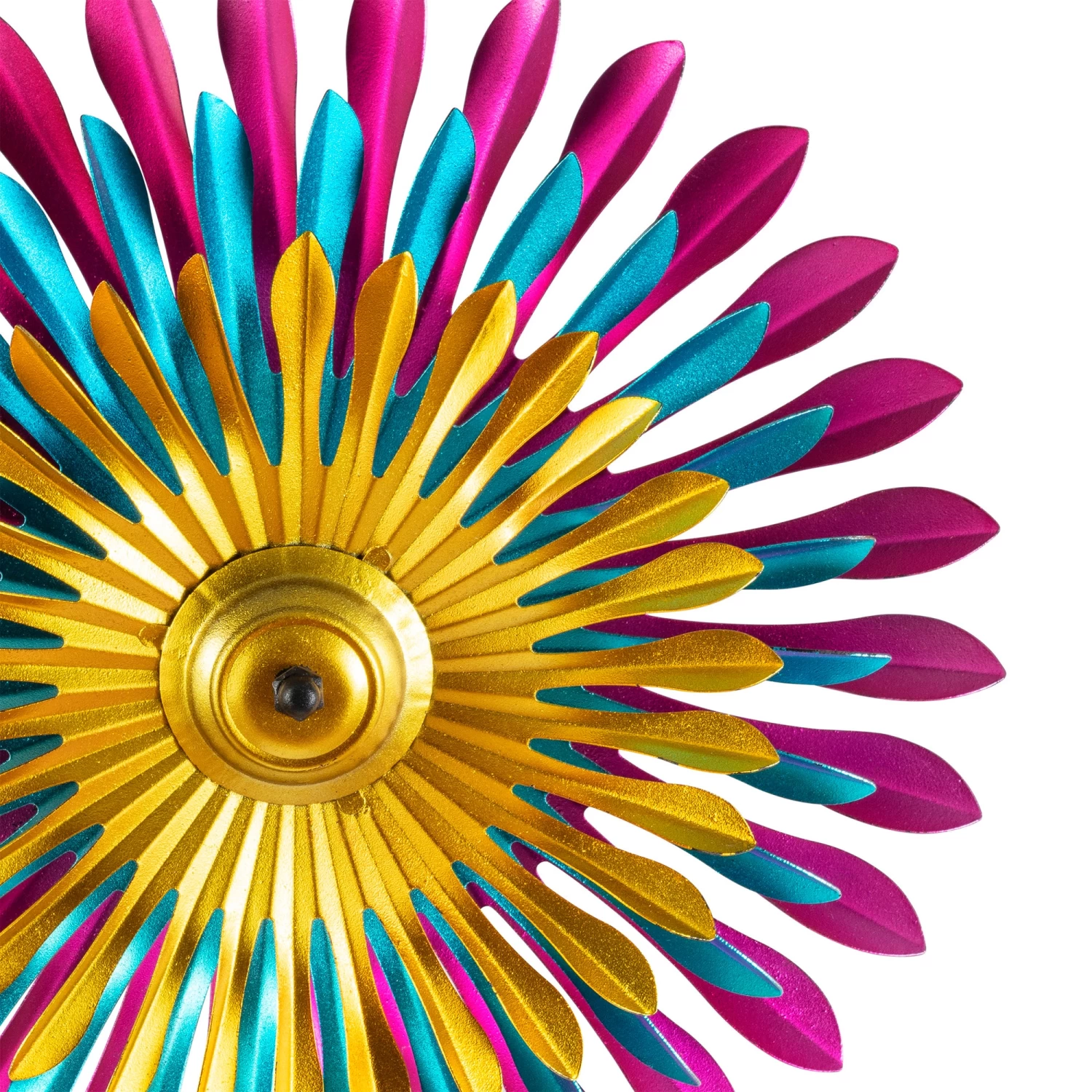 Welcome your guests with the 47″ tall outdoor Metal Daisy Windmill Triple Spinner Stake Yard Decoration. This multi-colored outdoor yard art is made with metal blades that replicate a daisy and add a breathtaking display of spinning movement and motion. Skillfully crafted from weather-resistant and sturdy iron, the all-season decorative spinner can be cleaned easily to keep its reflective shine and vibrant colors. Add one or multiple spinners to enhance your garden’s natural beauty with their electrifying colors and eye-catching movements.