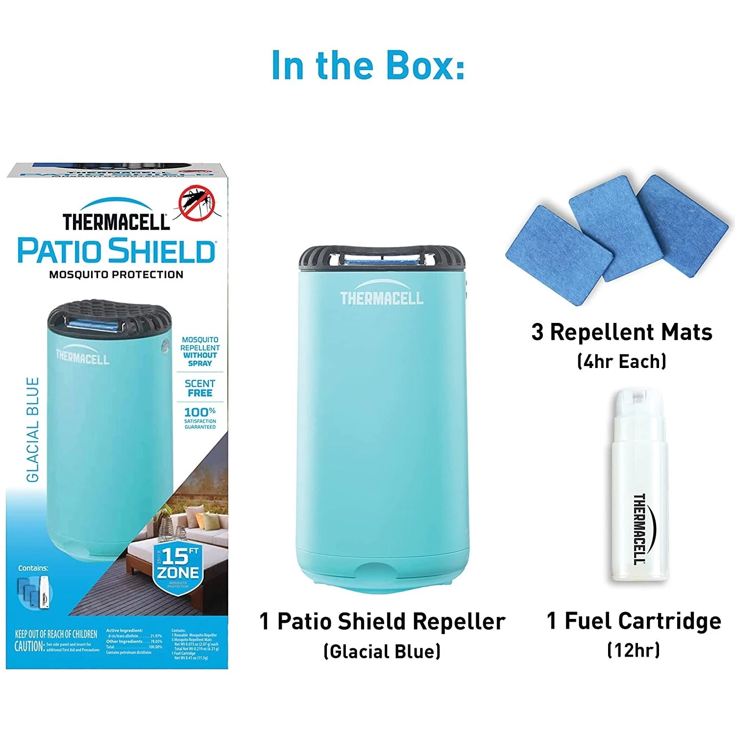 The Thermacell Patio Shield Mosquito Repeller effectively repels mosquitoes by creating a 15-foot zone of protection. This compact, easy-to-use and stylish device will look great on any patio or deck while it works to keep pesky mosquitoes from biting and bothering your guests.