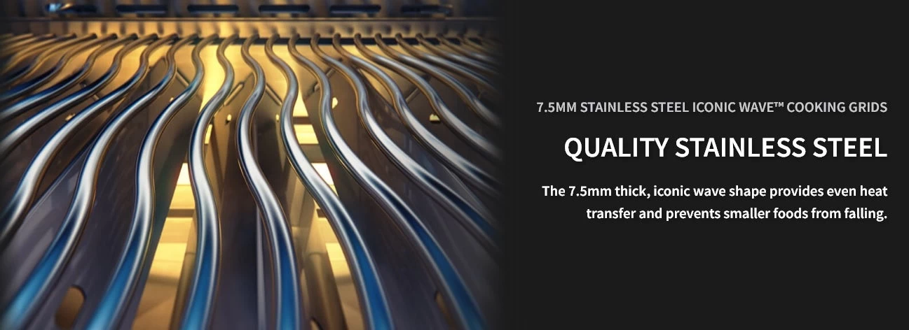 - Features the Iconic 7.5mm WAVE™ cooking grids for those distinctive sear marks