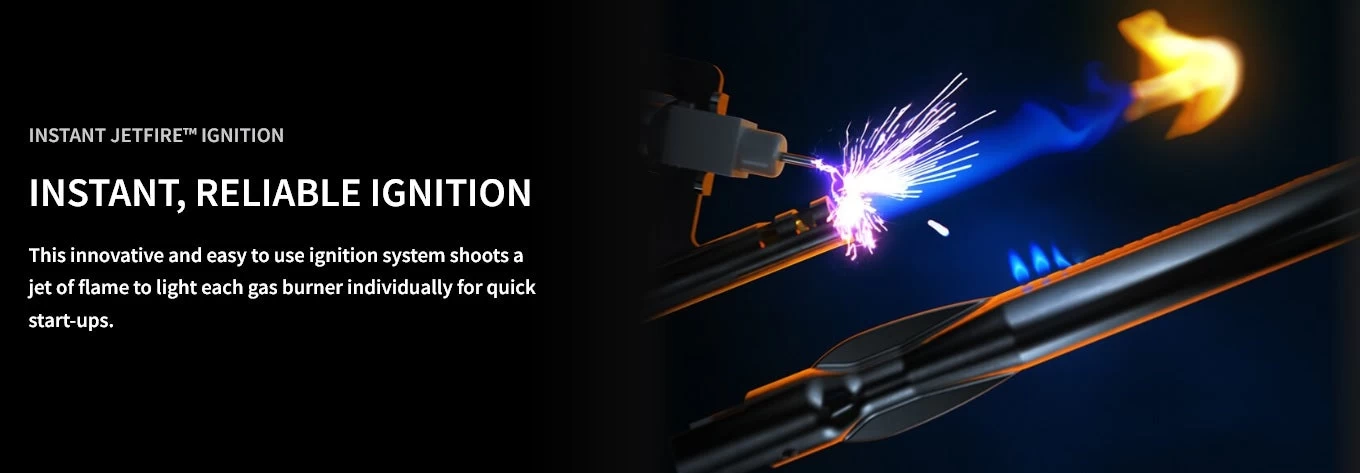 - Instant JetFire™ Ignition: Innovative and easy to use ignition system shoots a jet of flame to light each gas burner individually for quick start-ups