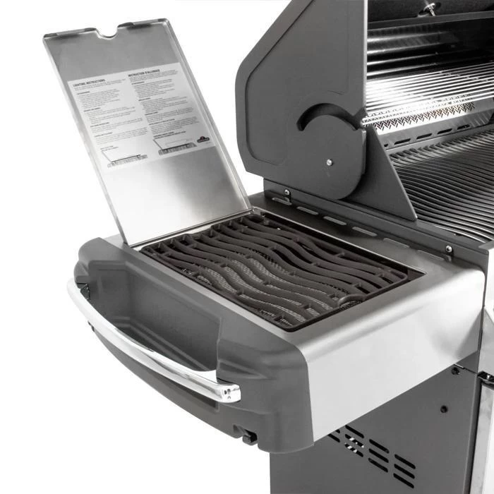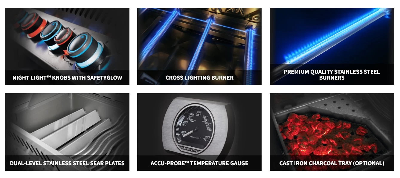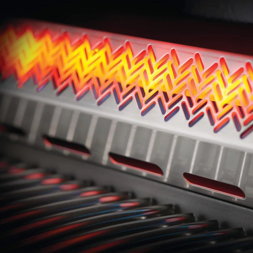 - Rear Infrared Rotisserie Burner: Infrared heat from the rotisserie burner is perfect for high heat searing and slow spit roasting