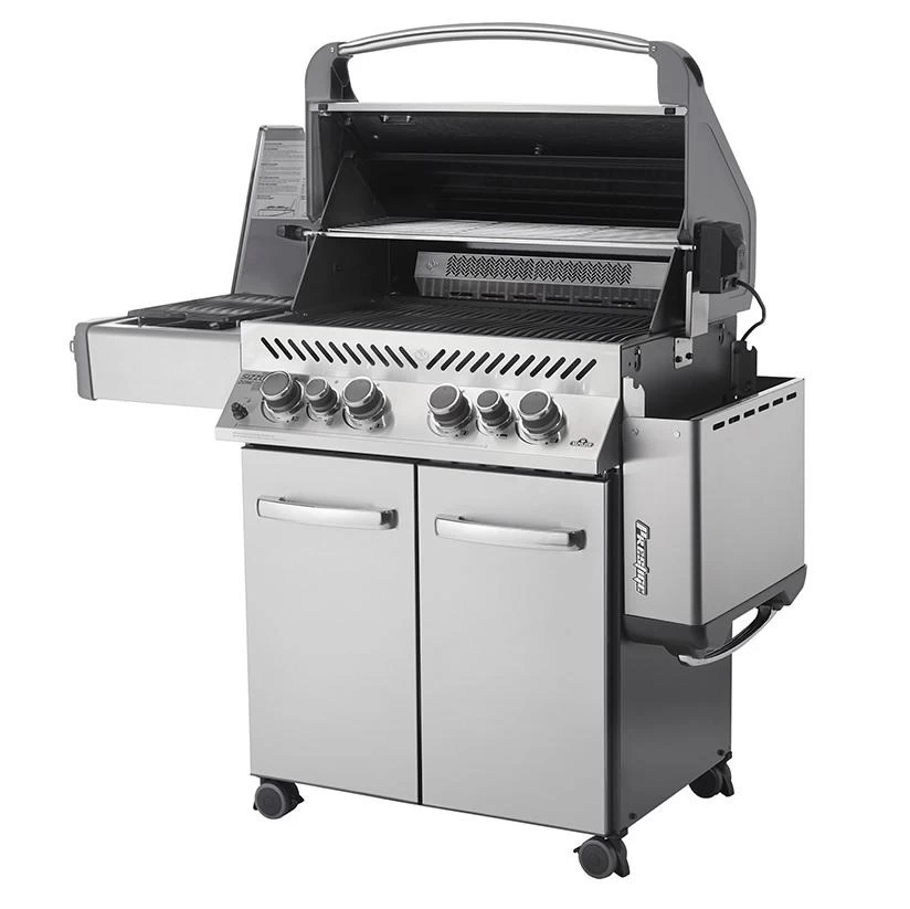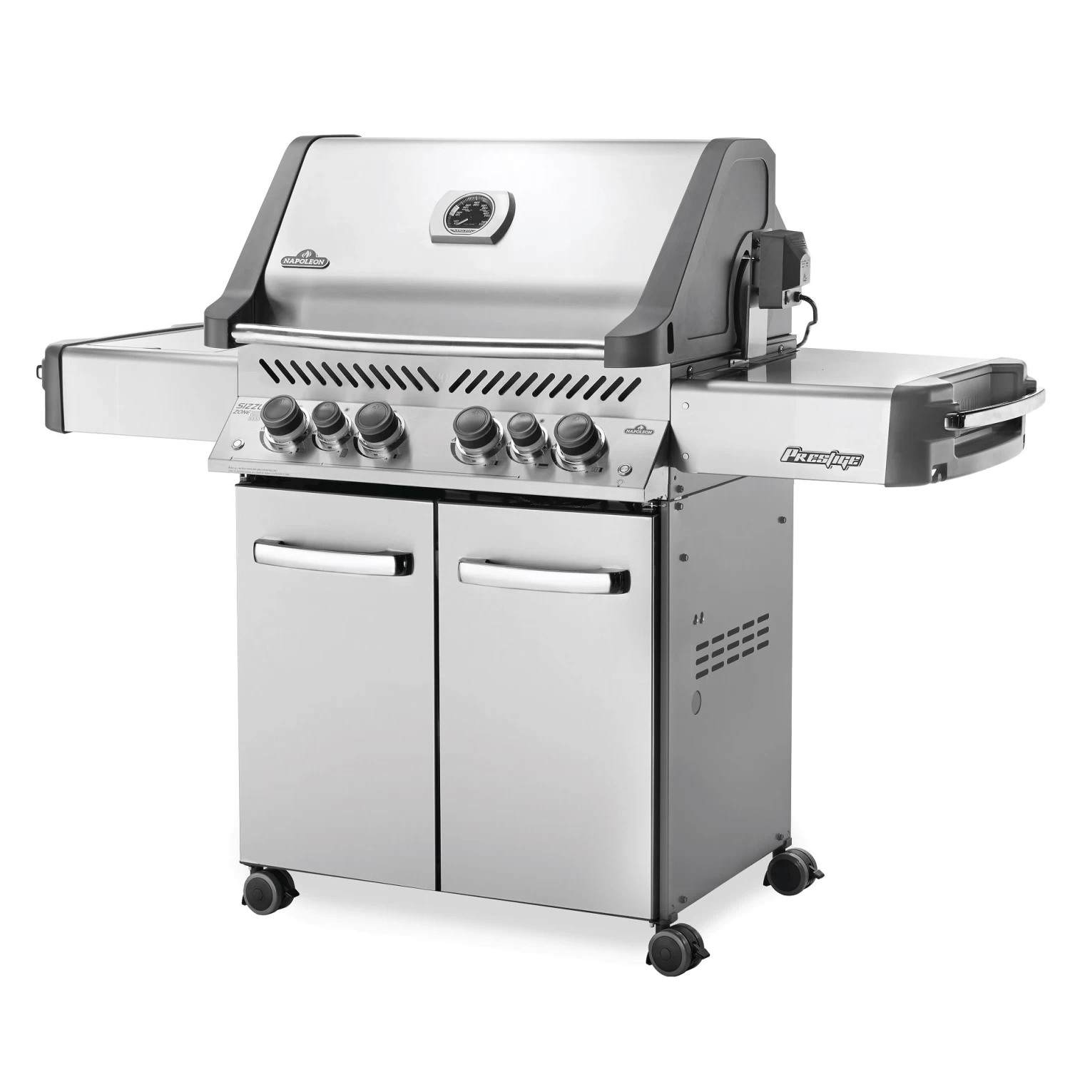 The Napoleon Prestige® 500 Grill is the total grilling package with the capabilities of a full outdoor kitchen. With 4 main burners, an infrared rear and side burner, this grill can cook meals using 8 unique cooking styles. Grill for a crowd with a capacity for up to 30 hamburgers, and up to 8 more on the side burner.