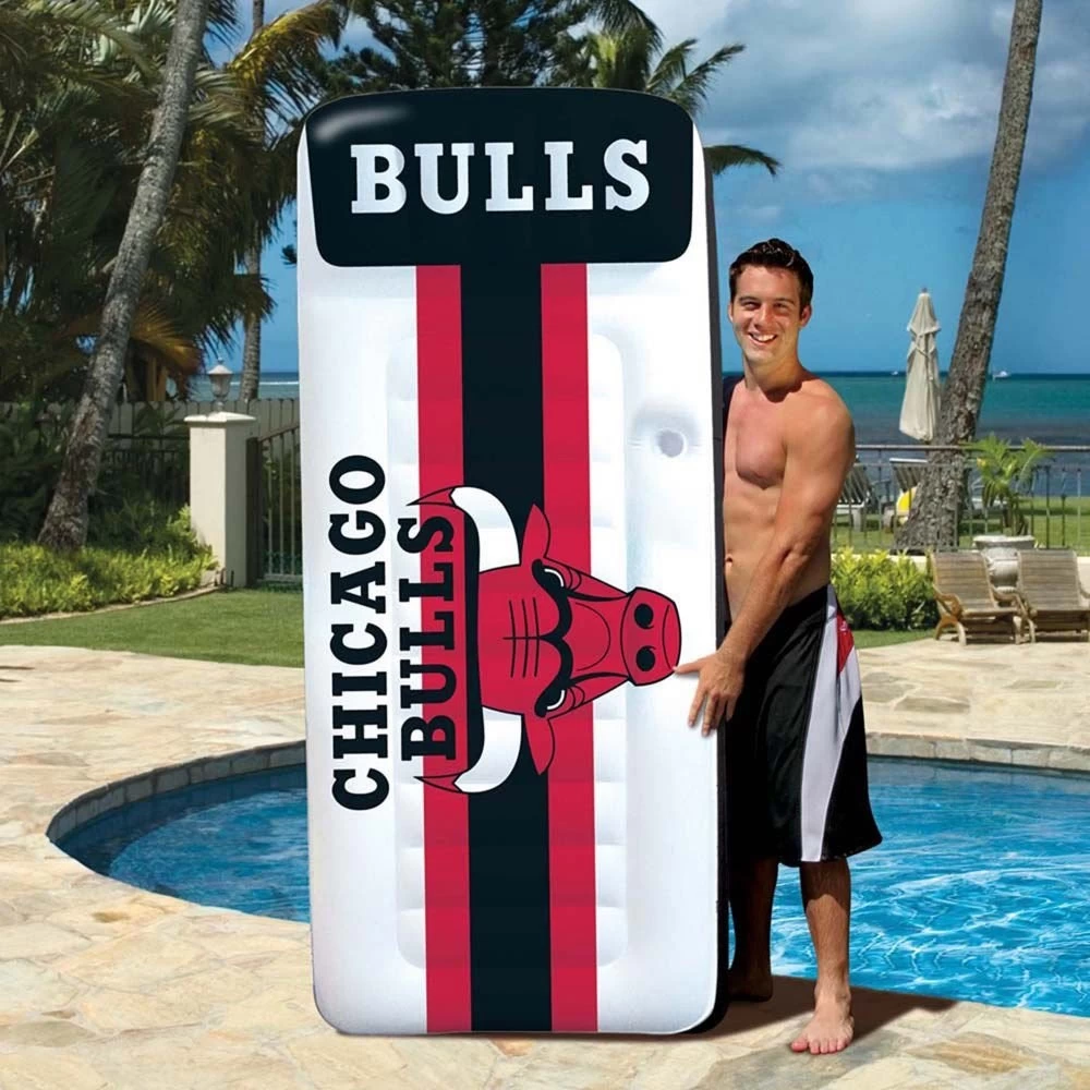 Lounge around in comfort while representing your favorite team with Poolmaster’s Chicago Bulls Giant Pool Mattress.