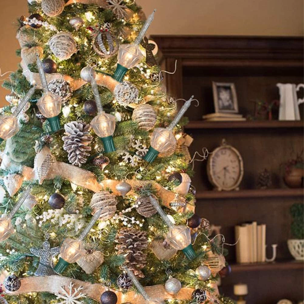 - Clear/Silver is pre-lit with clear incandescent lights and filled with silver glitter
