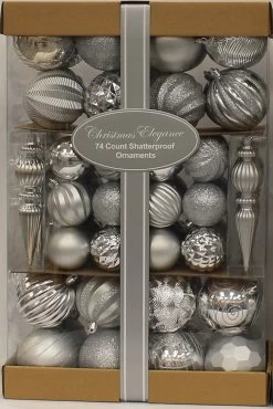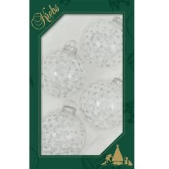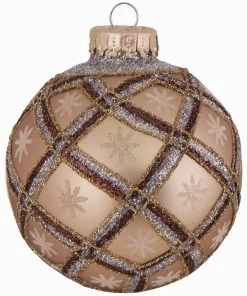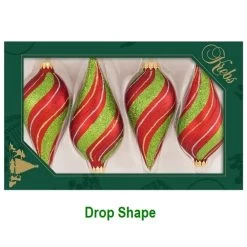 Set Of 4 Chiffon Red Stripe, Green Holly Leaves And Gold Glitter Glass Christmas Ornaments