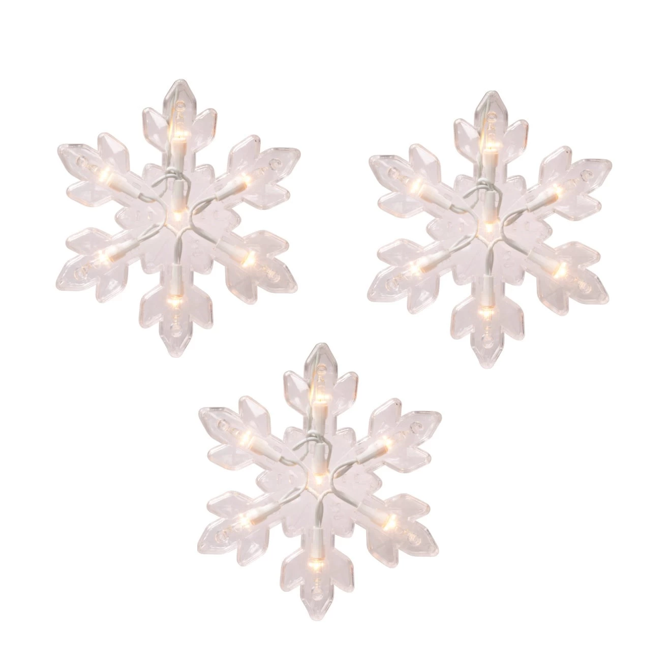 - Clear mini lights encased in 5 translucent snowflakes