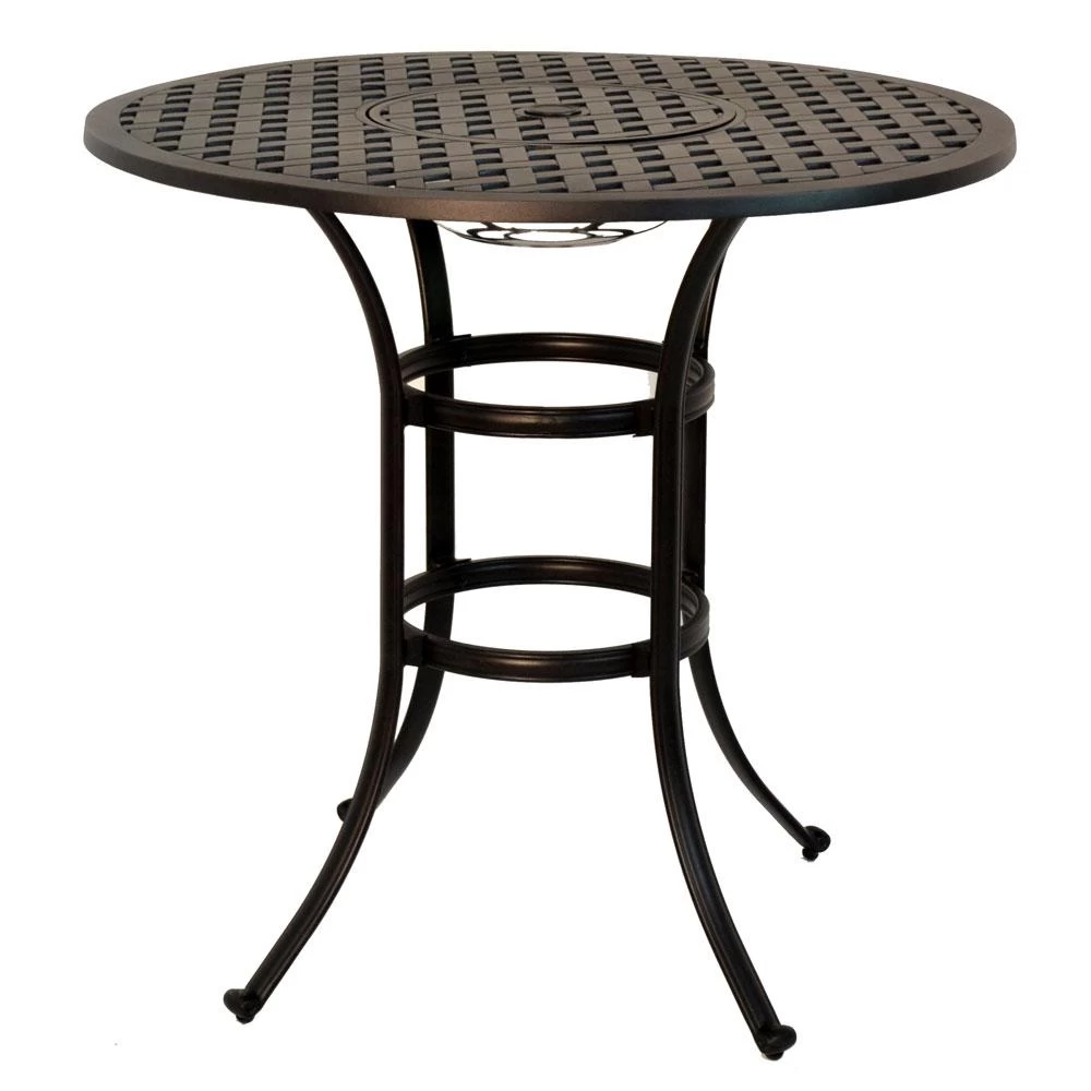 Add style and comfort to your deck or patio with our Stonegate Cushioned Bar Height Patio Set. It features outdoor swivel bar stools and a table with rust-resistant cast aluminum construction. This set was designed with full-circumference polished welds, detailed arms, an eye-catching lattice design and cushioned seats with quick-drying foam upholstery.