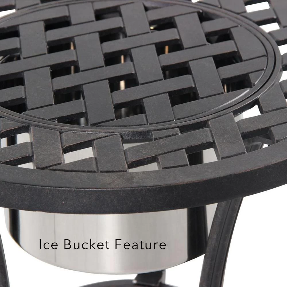 - Table includes an ice bucket feature
