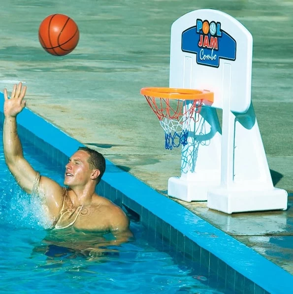 Get ready to experience some epic basketball dunks and energetic games thanks to this Pool Jam 2-in-1 Basketball/Volleyball Combo from Swimline. What better way to add value and activity to your pool than by adding both a basketball hoop AND a volleyball net?