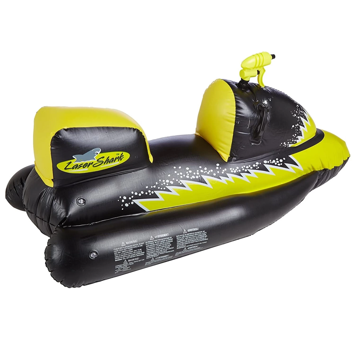 Just add water and let the fun begin with Swimline’s Lasershark Wet-Ski Squirter Pool Float. This fun and exciting black, yellow and white pool inflatable looks like a real water jet ski. Features a water gun and a seat in the center with a backing so your child is safe on the water.