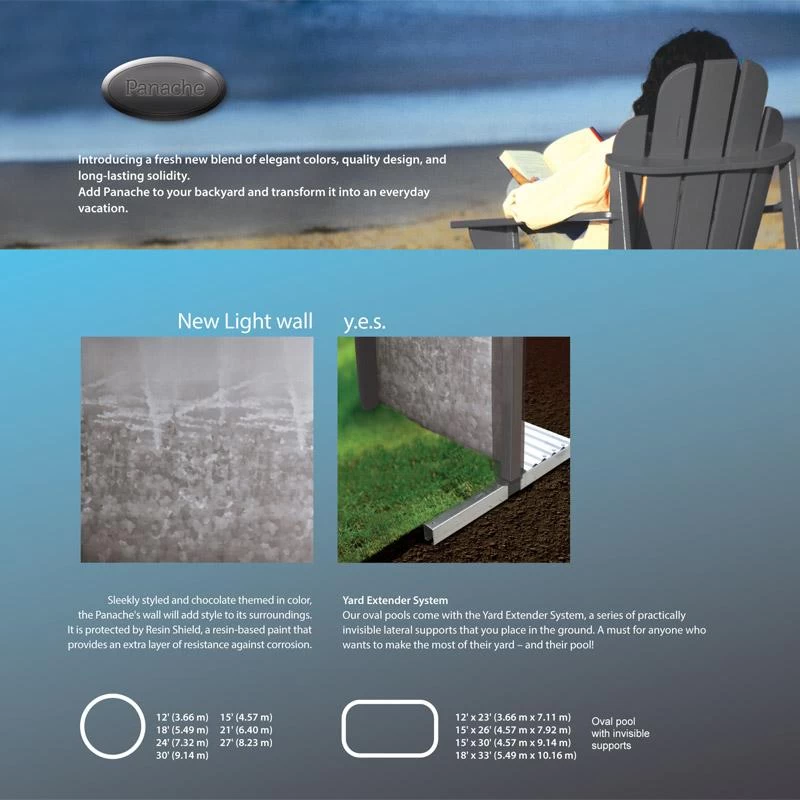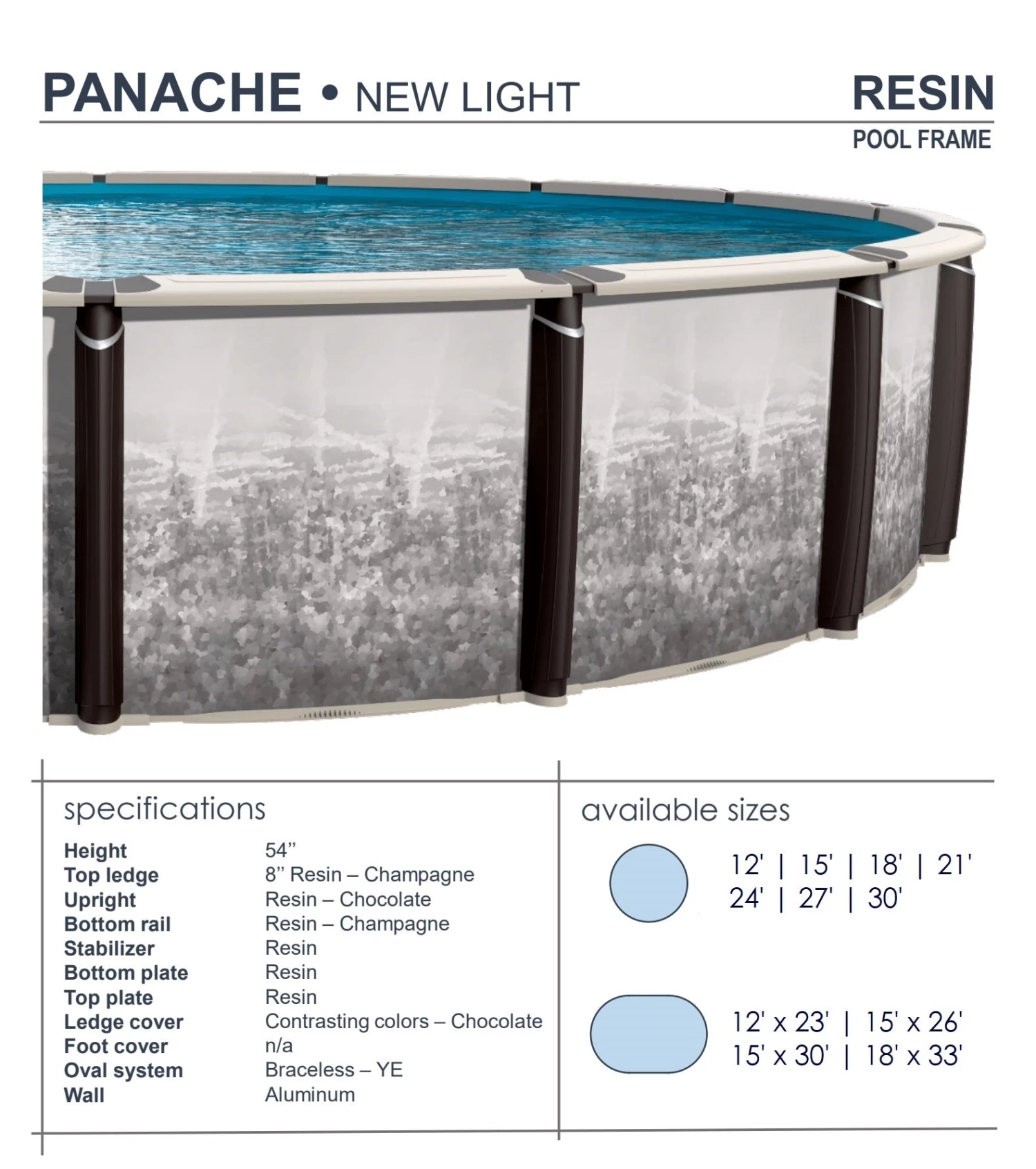 Introducing a fresh, new blend of elegant colors, quality design and durability. Add this Panache 54″ Resin Above Ground Swimming Pool to your backyard and transform it into an everyday vacation. Innovative resin injection molding makes this an eye-catching addition to any yard. The revolutionary resin design means fewer parts and easier installation.
