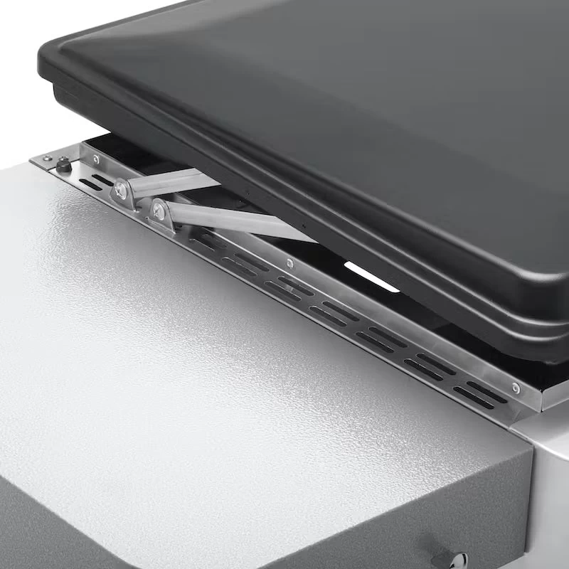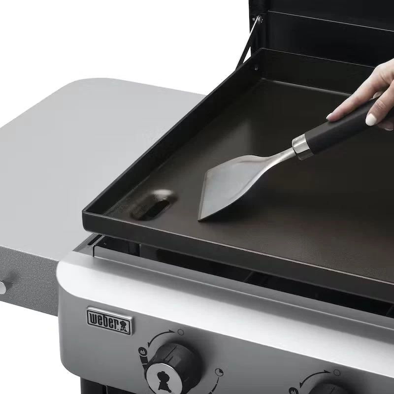 - Hinged hard cover helps protect griddle from the elements between cooks