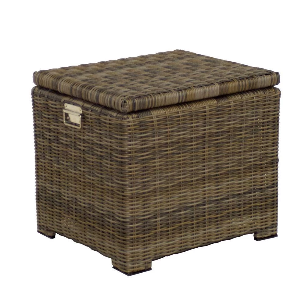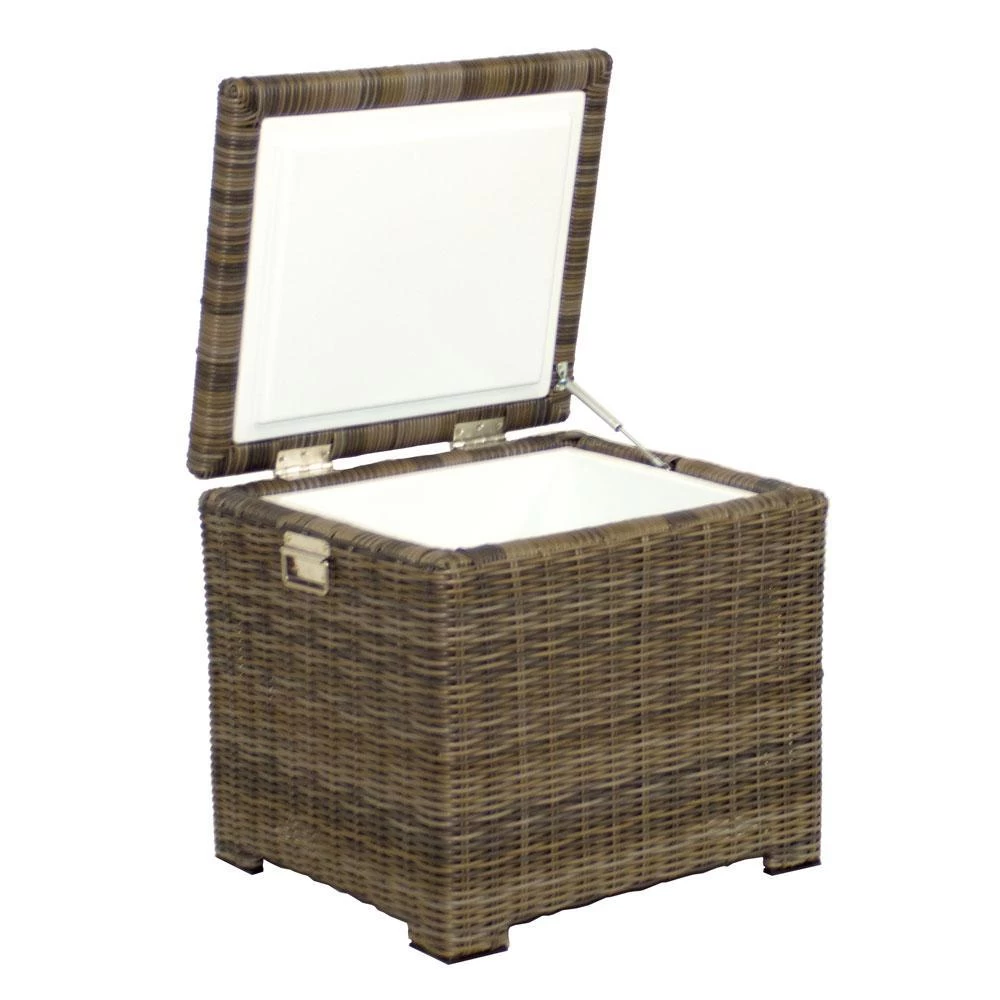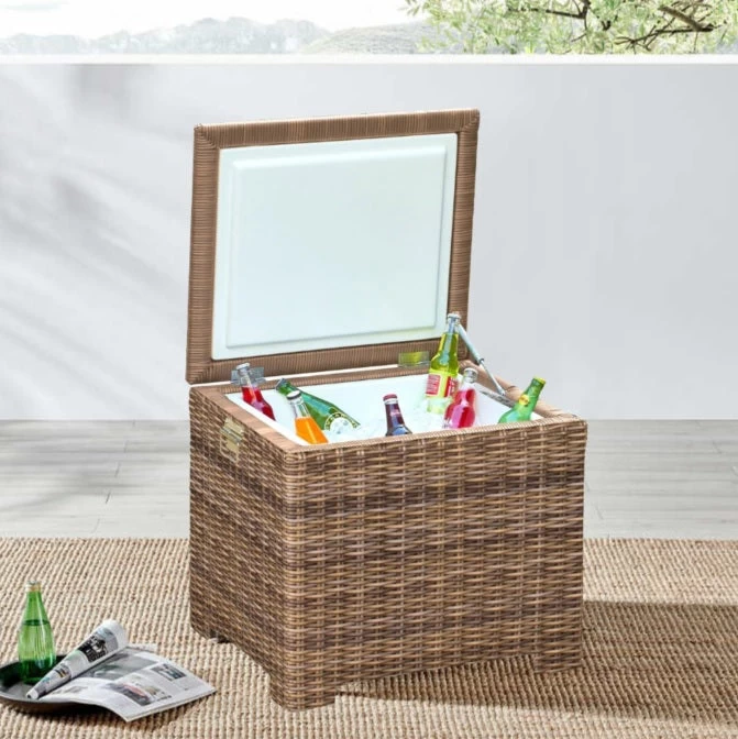 This Wicker Willow Thick Ice Chest End Table adds versatility to any outdoor space. This unique accessory features wicker finishes that are made from High-Density Polyethylene (HDPE) and infused with rich color and UV-inhibitors to prevent cracking, chipping and fading ordinarily caused by sunlight.Â
